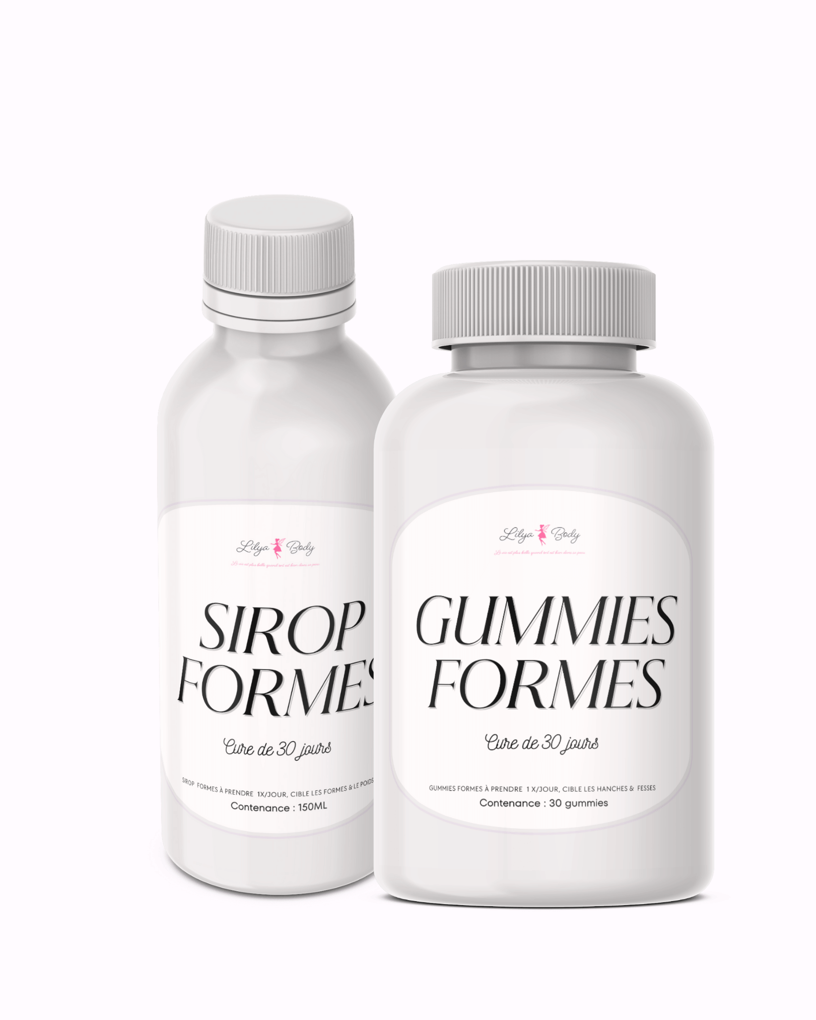 Le Pack Courbes & Volume réunit deux compléments alimentaires complémentaires conçus pour accompagner votre routine nutritionnelle quotidienne. L’association d’un sirop concentré et de gummies faciles à consommer permet de soutenir votre apport nutritionnel et de contribuer à une silhouette plus harmonieuse dans le cadre d’une alimentation variée et équilibrée.